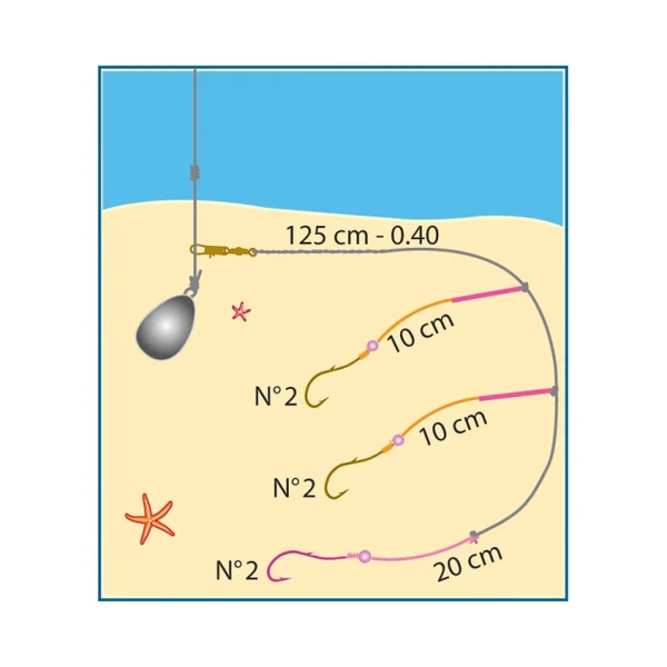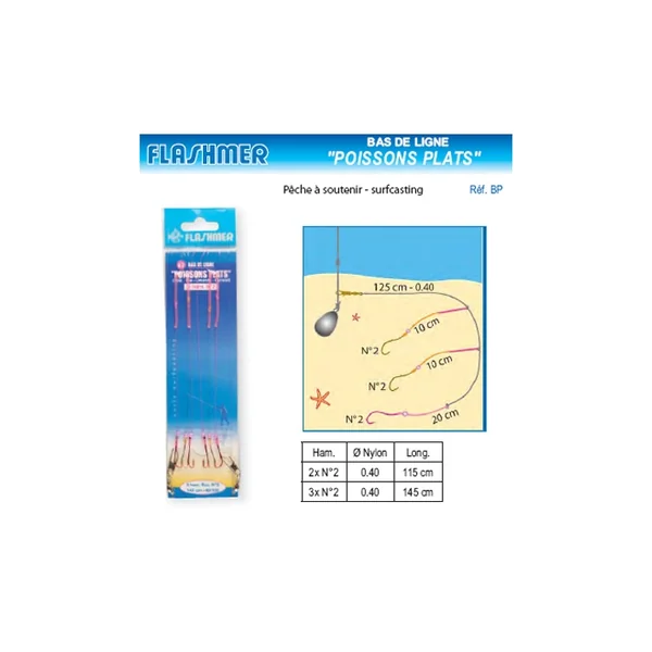 | Bas de ligne Poissons Plats | Pêche à soutenir – surfcasting Hameçon 2xN°2 Diamètre Nylon : 0.40 Longueur : 115 cm Hameçon 3xN°2 |