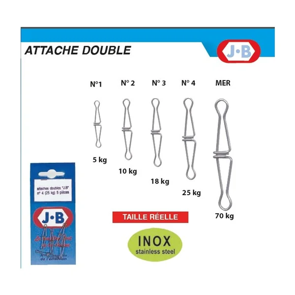 | 5 Attaches Doubles JB | Poids entre 5 kg et 70 kg Pochette de 5 |