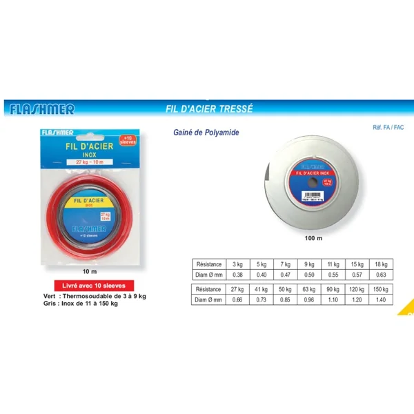 Acier Gainé Inox 10 m 150 kg Gainé de Polyamide