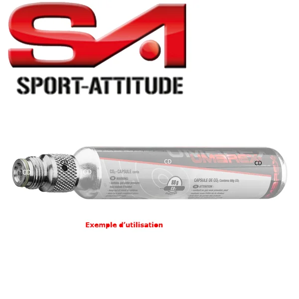 ADAPTATEUR CO2 SPORT ATTITUDE POUR BOUTEILLE 4OZ 88G :Caractéristiques :-Adaptateur pour bouteille de CO2, 88g, pour marqueurs CO2 de paintball.-Pour fusil à pompe de défense Walther T4E SG68.-Vendu à lunité.