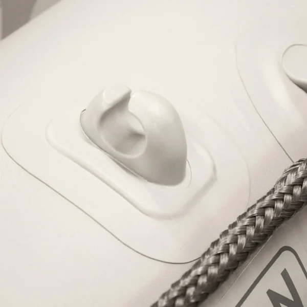 Autre élément de confort : les poignées de portage en PVC souple. Contrairement aux poignées rigides classiques, elles sont fabriquées dans un matériau de grande qualité, à la fois résistant et agréable en main. Elles rendent le transport de l’annexe bien plus confortable, même à deux personnes, et évitent les points de pression douloureux lorsque l’annexe est chargée ou portée sur de longues distances.