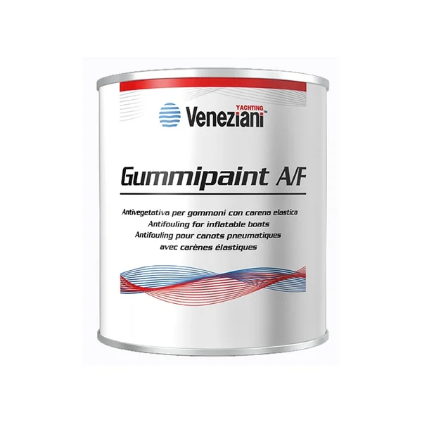 Antifouling Veneziani Gummipaint bateau pneumatique 0,5L Blanc Antifouling noir caractérisé par sa souplesse, recommandé pour les bateaux pneumatiques.