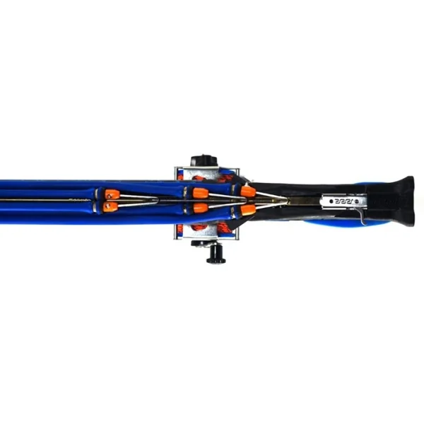La tête ouverte triple sandow bénéficie d’un design hydrodynamique élégant qui permet d’orienter l’arbalète facilement et ce dans n’importe quelle direction. Les trois sandows sont placés à différentes hauteurs, ce qui contribue encore à la réactivité de l’abalète et à l’absence de vibration et de friction entre eux. Un système de lestage en inox permet d’obtenir un équilibre précis.