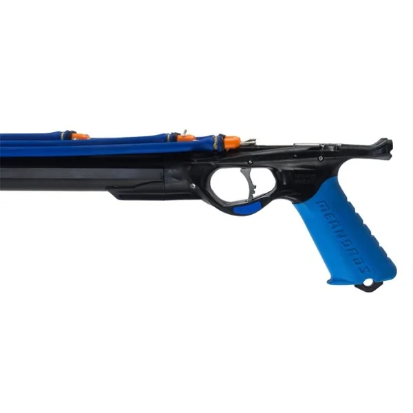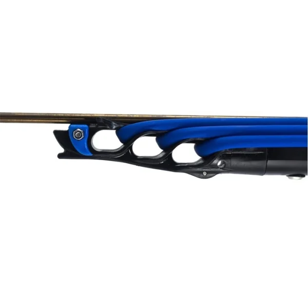 L’arbalète B32 BW (blue water) a été conçue pour les tirs à longue distance en en eaux profondes et la chasse à l’indienne. Chaque composant de ce modèle a été étudié pour optenir la meilleure qualité de tir possible. La B32 BW est l’aboutissement de nombreux tests et essais approfondis. La tête ergonomique triple sandows permet de parfaitement optimiser la puissance des trois sandows grâce à un diamètre plus réduit. Ajoutez à cela une augmentation de la masse du fusil et une tête plus longue de 6 cm, vous obtenez un recul considérablement diminué. Ce sont ces éléments qui rendent la gamme B32 BW de Meandros supérieure