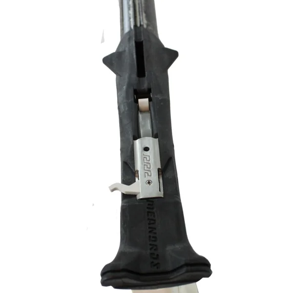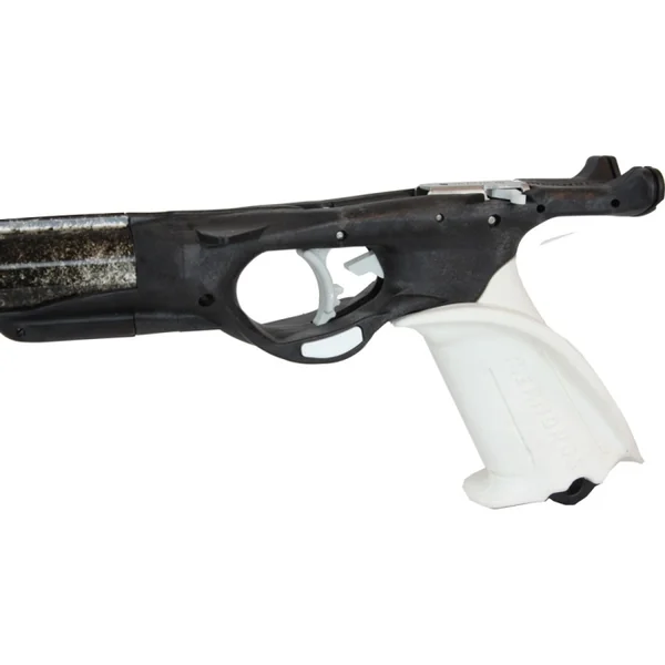 Le fusil harpon Sting est équipé d’une crosse Leader (version Pacific), la plus avancée et ergonomique au monde, qui est particulièrement discrète et dotée d’une poignée anatomique anti-dérapante, un talon de chargement, un guide flèche à friction réduite mais aussi un guide monofilament ambidextre.