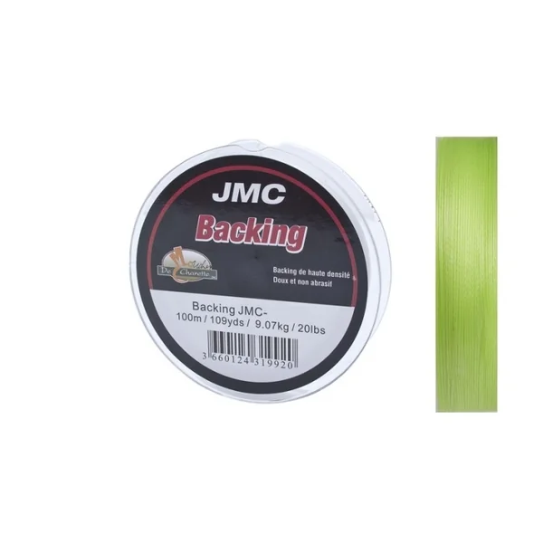 Backing Jmc Extra Fin 30lbs Le backing JMC est en dacron de très haute qualité, doux et non abrasif pour les anneaux. Sa régularité permet un enroulement parfait et évite les emmêlements lors des départs puissants. Son diamètre autorise un remplissage conséquent de la bobine de moulinet.