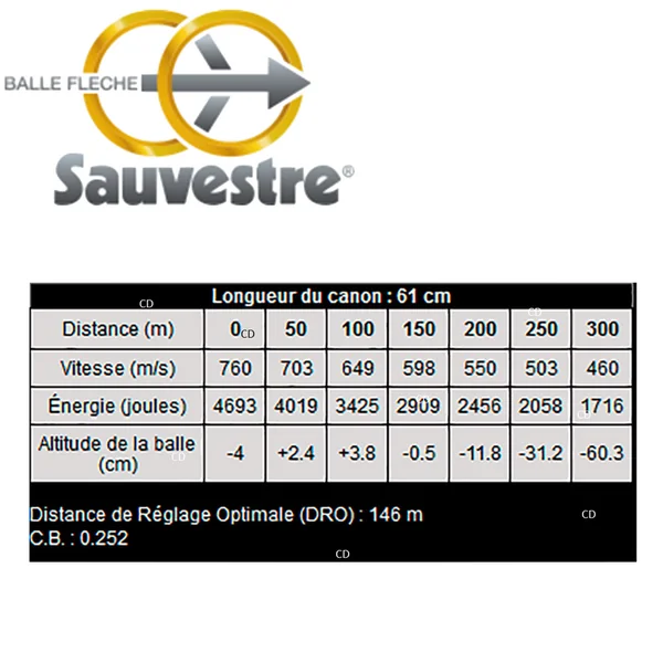 La balle Flèche Interne Portée (F.I.P), de marque Sauvestre, est dotée d’un projectile bimétallique SANS PLOMB.