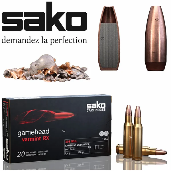 Balles Sako Gamehead Varmint RX 308 Win 130 Grains Par 20