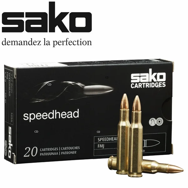 Balle totalement chemisée, (Full Métal Jacket), de marque Sako, qui assure une précision optimale pour le tir à la cible, au petit gibier à fourrure et aux oiseaux.