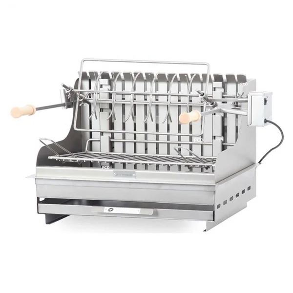 –Foyer vertical avec un tournebroche, un moteur électrique force 10 kg (2t/min) et une broche anglaise.