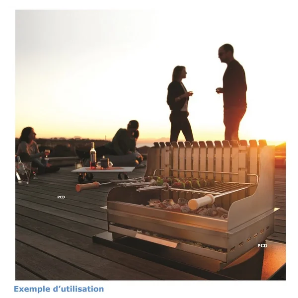 Il se compose d’un foyer horizontal avec une grille réglable sur trois niveaux, et permet de régaler jusqu’à dix convives.