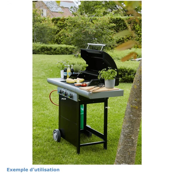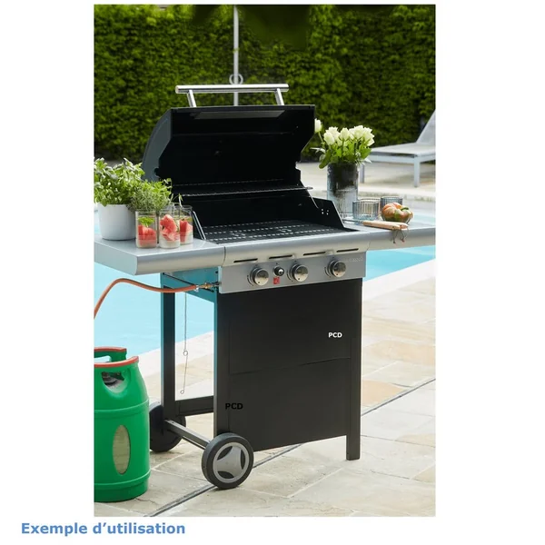 Découvrez ce barbecue doté de troisbrûleurs et de ses deux tablettes latérales pour entreposer vos plats et mets préférés.