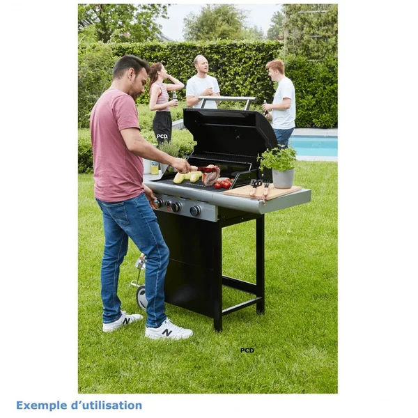 Découvrez ce barbecue doté de troisbrûleurs et de ses deux tablettes latérales pour entreposer vos plats et mets préférés.