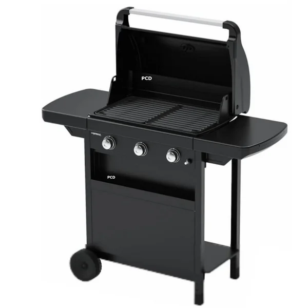 -3 brûleurs en acier aluminé (7.5 kW) avec cache-brûleurs.
