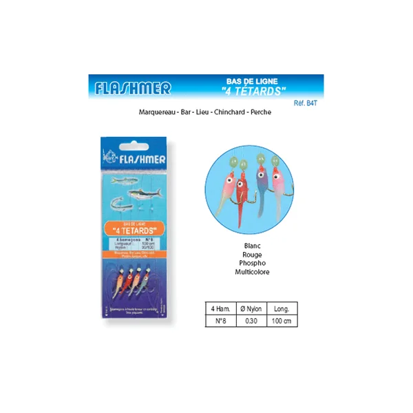 Bas De Ligne Flashmer 4 Tetards Marquereau – Bar – Lieu – Chinchard – Perche