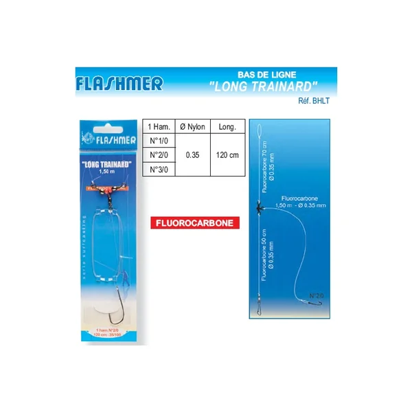 | Bas de ligne Long Trainard 1 Hameçon | N°1/0 > 0.35 mm > 120 cm N°2/0 > 0.35 mm > 120 cm N°3/0 > 0.35 mm > 120 cm |