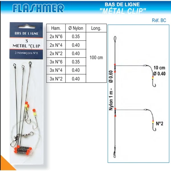 Bas de Ligne Metal Clip 2 Hameçons N° 4 Bas de Ligne Metal Clip 2 Hameçons N° 4