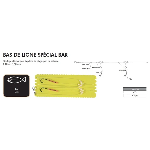 Bas de Ligne Ragot Spécial Bar N° 2 Montage efficace pour la pêche de plage, port ou estuaire.