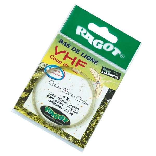 Bas de Ligne Ragot VHF Coup du Soir Ces bas de ligne possèdent des qualités remarquables de raideur et d’équilibre qui évitent les emmêlages, tout en permettant des posés très délicats.