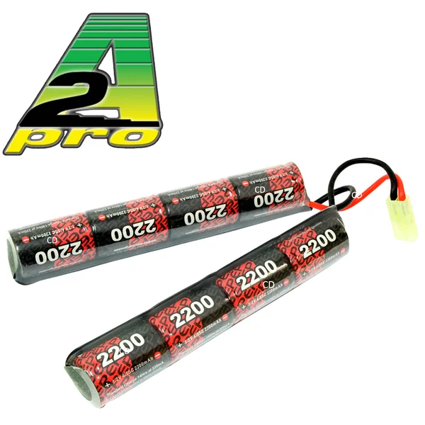BATTERIE A2PRO MINI 9,6V 2200MAH :Caractéristiques :-Batterie, de marque A2Pro, pour votre réplique AEG.-Batterie Mini 9,6Volts, 2200 Mah.-Tension : 9,6 Volts.-Coloris : Rouge et Noire.-Ampérage : 2200 Mah.*DANGEREUX ! Respecter les précautions demploi.