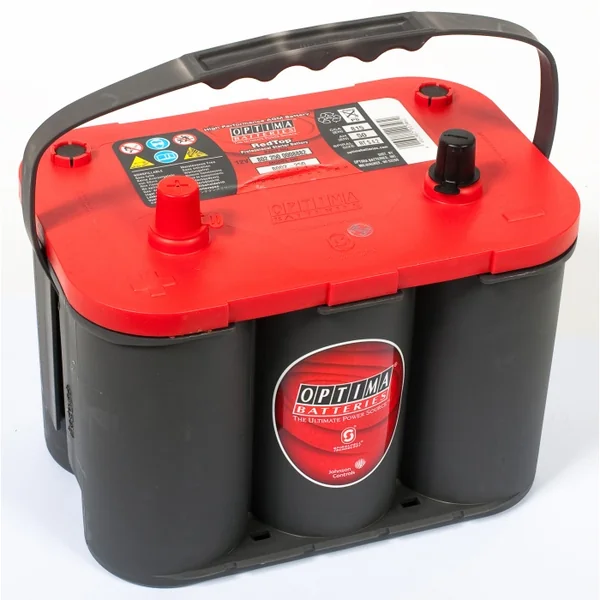 Batterie Optima Red RTS 4.2 50AH Les batteries OPTIMA sont des batteries très avancées techniquement : il s’agit d’une batterie AGM (l’acide est imbibé dans la fibre de verre) avec des éléments enroulés (technologie Spiralcell). Cette batterie est sans entretien, 100% étanche (elle ne contient pas d’acide liquide), très résistante aux vibrations et surtout elle bénéficie d’un ratio volume / poids / puissance exceptionnel pour une batterie au plomb.