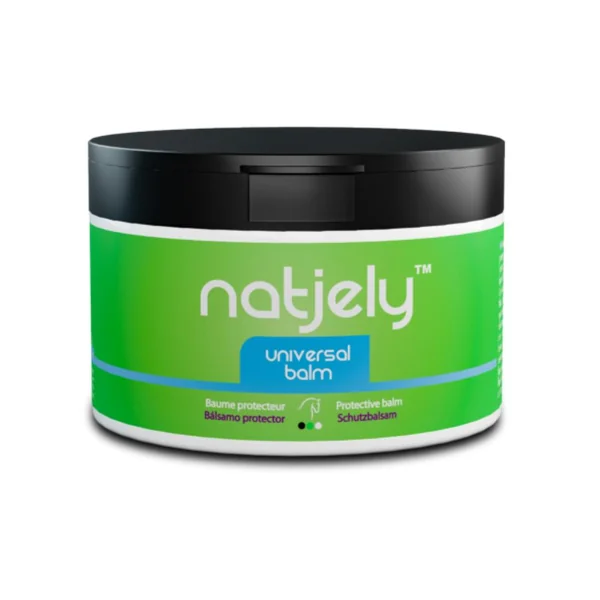 Le Natjely Aminaderm est un baume protecteur universel 100 % naturel, spécialement conçu pour hydrater intensément et protéger la peau des chevaux des agressions extérieures. Formulé à partir d’ingrédients végétaux et sans silicone, ce baume allie huile de tournesol, huile d’olive, beurre de karité et cire d’abeille, garantissant une nutrition profonde et une barrière résistante à l’eau Sa texture riche mais respirante reste stable 48 à 72 heures, même en conditions humides ou au pré : elle ne coule pas et résiste à la pluie, à la douche comme à la transpiration Ce baume est particulièrement adapté pour protéger les zones sensibles : paturons, fourchettes, passage de sangle, plis cutanés, dessous de la queue ou stillage, ainsi que la commissure des lèvres Il constitue également un bouclier anti-insectes, en limitant les piqûres de tiques, moucherons, culicoïdes et mouches plates, ce qui est utile pour prévenir les irritations ou les réactions allergiques Il peut être appliqué 1 à 3 fois par semaine selon la problématique (insectes, boue, dessèchement) Le baume peut aussi être utilisé en traitement après-soleil, pour apaiser les zones asséchées par le soleil, ainsi qu’en prévention des irritations dues aux frottements Ce produit est sans substances dopantes, non photo-sensibilisant, et peut s’appliquer sur juments gestantes et poulains de plus de six mois, selon les recommandations