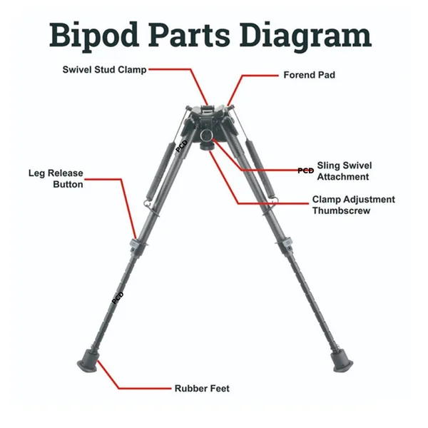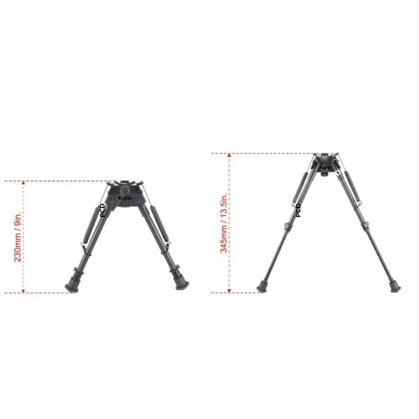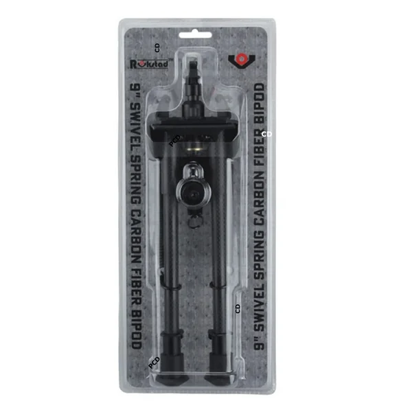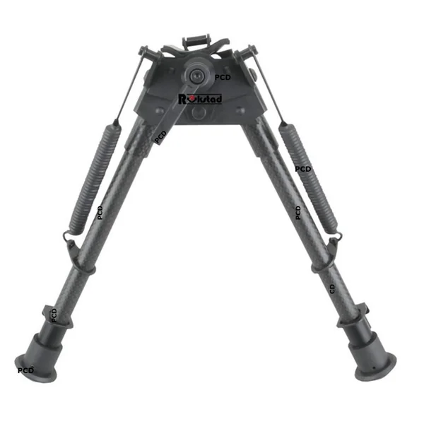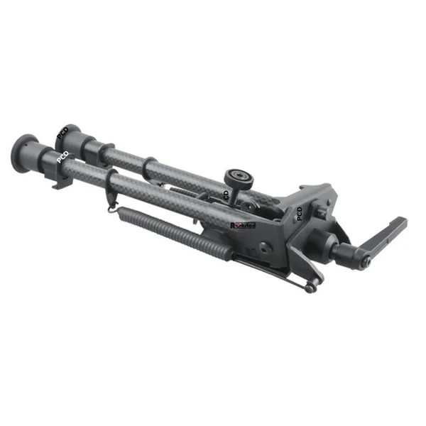 Bipied à ressorts, en fibre de carbone, polyvalent et stable grâce à ses pieds en caoutchouc qui lui permettent de s’adapter à tous les types de terrains.