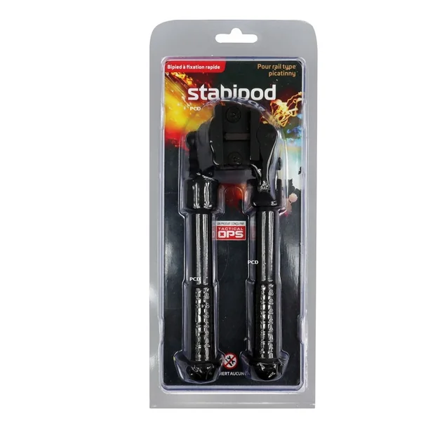 Le Stabipod est un bipied tactique en aluminium anodisé noir, se fixant très rapidement grâce à une pince quart de tour sur rail type Picatinny.