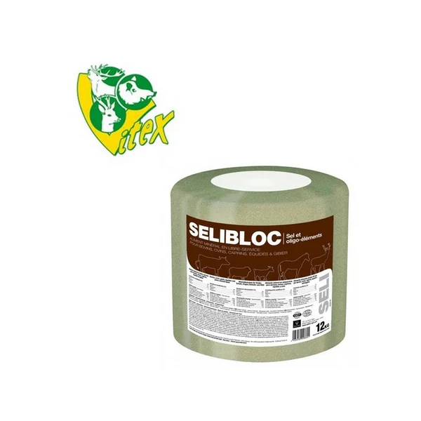 BLOC SELIBLOC VITEX 12KG :Caractéristiques :-Selibloc est un bloc à lécher de sel avec oligo-éléments, nécessaires pour prévenir les risques de déficience conduisant à des baisses de performances.-Peut être déposé à même le sol, dans une fourche d’arbre ou sur une souche sur laquelle vous aurez, au préalable fixé un gros clou ou une tige de fer à béton.-Poids : 12Kg.-Pour de grosses quantités merci de nous contacter !*DANGEREUX ! Respecter les précautions demploi.