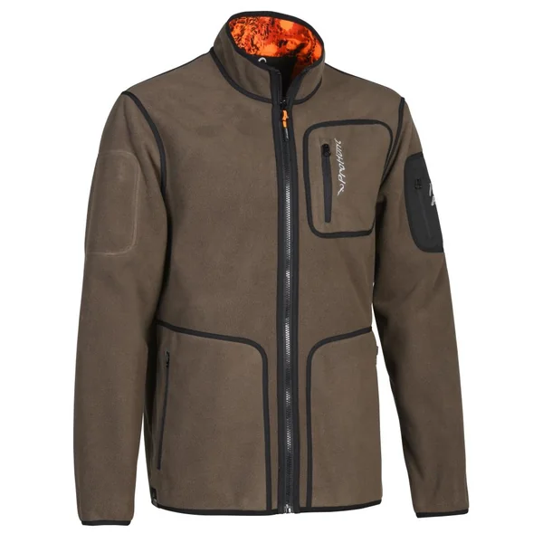 - Coté marron : 1 poche poitrine zippée et 2 poches basses zippées.