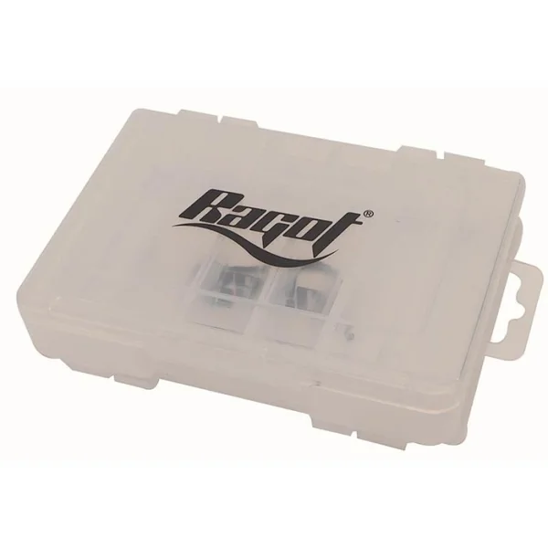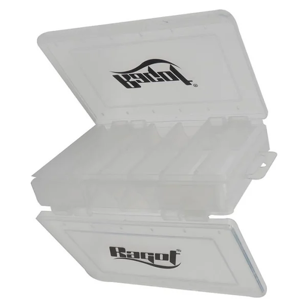 Boite de rangement double faces Ragot Boite double face qui permet de ranger 6+6 poissons nageurs. Trou d’évacuation de l’eau pour un séchage rapide et éviter la corrosion des hameçons.