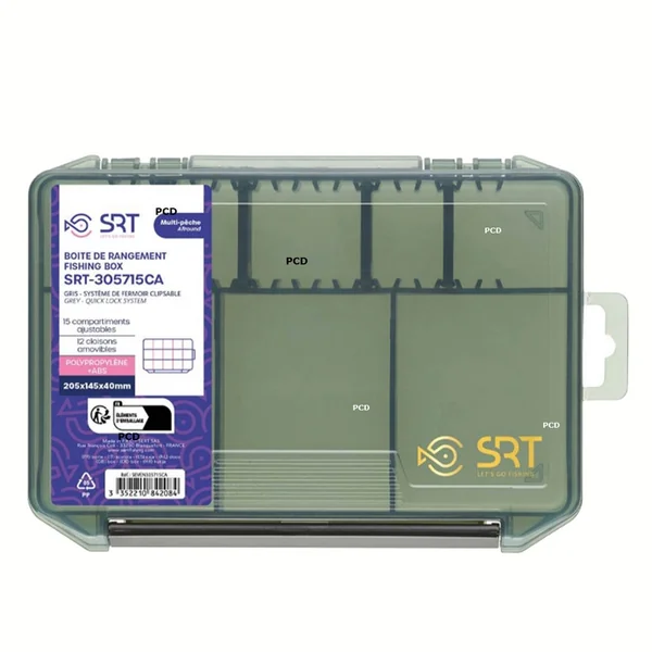 Cette boîte en polypropylène et ABS, de marque SRT, sera parfaite pour ranger et organisateur tout votre matériel de pêche.