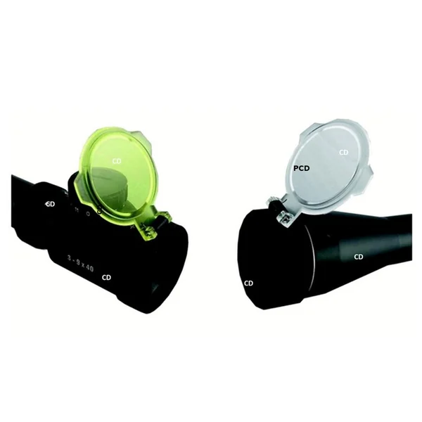 Bonnettes avant et arrière, de marque Véoptik, jaune et blanc, pour votre lunette de chasse et/ou de tir sportif.