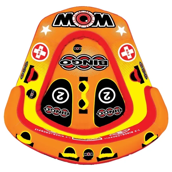 Bouée Tractée 2 personnes Wow Bingo 2 La Bingo 2 a spécialement été conçue pour permettre aux familles de s’amuser. Cette petite bombe est une bouée 2 en 1 car il s’agit du seul modèle avec cockpit qui soit équipé d’un point de traction à l’avant et d’un autre à l’arrière. Son connecteur EZ Tow permet de passer de l’un à l’autre très facilement pour glisser dans des positions différentes, assis avec le point de traction situé à l’avant ou à genoux si le connecteur est à l’arrière. L’assise profonde avec dossier haut permet de se sentir à l’aise et en sécurité, tandis que le fond de la bouée permet une glisse fluide sur l’eau avec moins d’accroche et donc une consommation de carburant moindre. La Bingo 2 plaira à tous les membres de la famille, qu’ils préfèrent les sessions tranquilles ou soient amateurs de sensations fortes Caractéristiques Bouée Tractée 2 personnes Wow Bingo 2