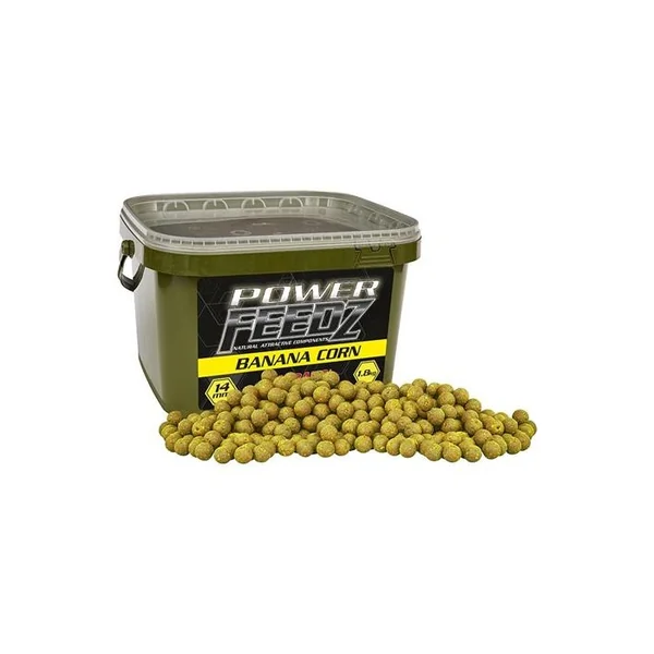 Bouillette Starbaits Power Feedz Banana Corn Formulées sur la même base que les FEEDZ, les POWER FEEDZ BOILIES possèdent une masse aromatique ainsi qu’une masse attractante renforcée se combinant parfaitement avec les graines utilisées pour la conception du mix.