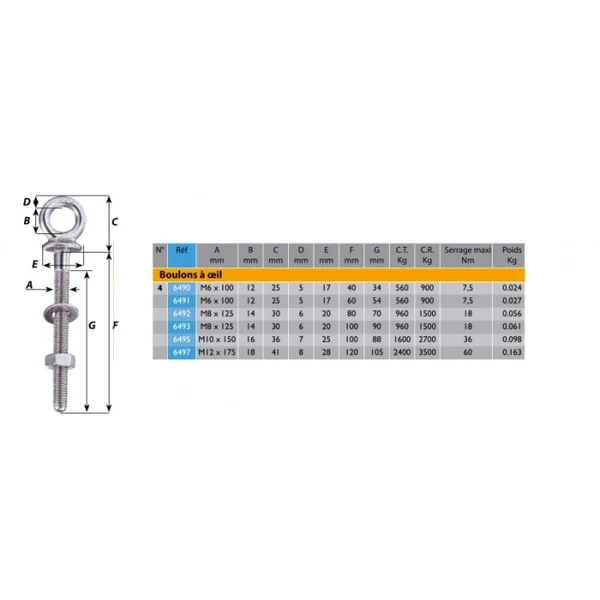 Forgés d?une seule pièce ces boulons et écrous à ?il vous garantissent la réalisation de vos fixations en toute sécurité. Avis Boulon à oeil Wichard inox Écrivez votre avis