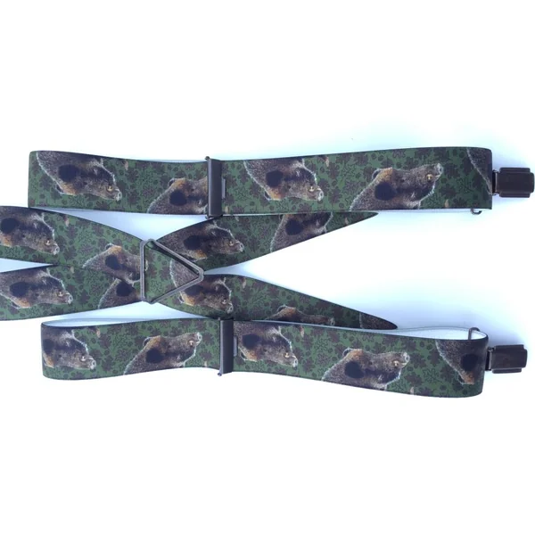 Bretelles réglables à pinces. Motif tête de sanglier.