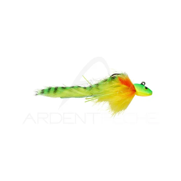 Ce leurre est ce qu’on pourrait appeler une mouche à lancer. Avec sa tête en zinc et ses fibres naturels il propose une présentation planante et ondulatoire à chaque mouvement d’eau ou de canne. Un leurre plus discret qu’un poisson nageur, dont il sera le parfait complément.
