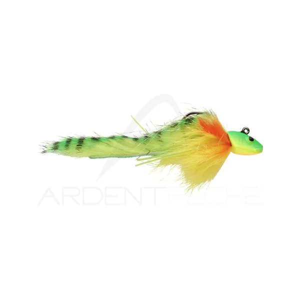 Ce leurre est ce qu’on pourrait appeler une mouche à lancer. Avec sa tête en zinc et ses fibres naturels il propose une présentation planante et ondulatoire à chaque mouvement d’eau ou de canne. Un leurre plus discret qu’un poisson nageur, dont il sera le parfait complément.