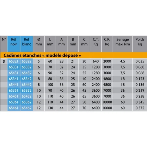 – Livré avec verrous et contreplaque Avis Cadène Wichard étanche blanche inox Écrivez votre avis
