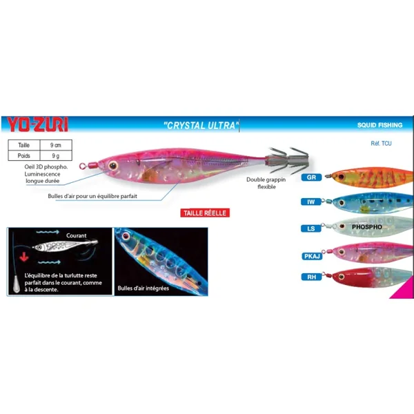 Poids : 9 g Caractéristiques Calamarette Yo-Zuri Crystal Ultra 90 mm