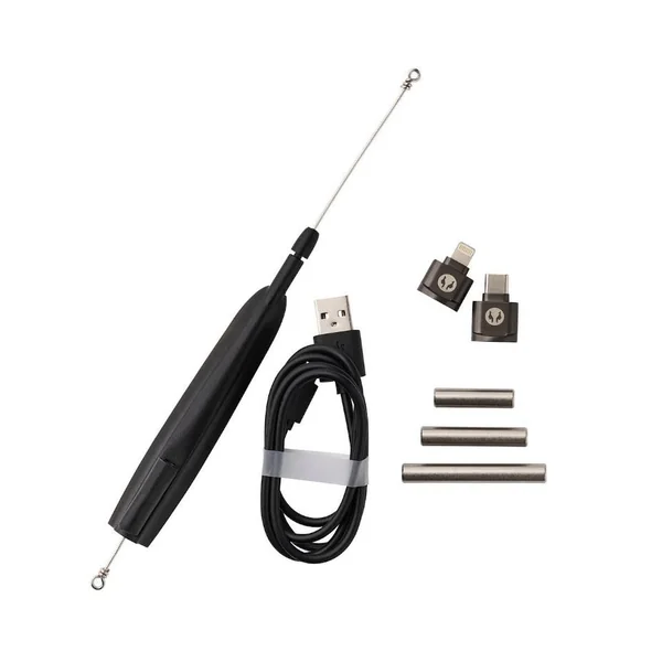 L’indicateur de tension de la batterie présente trois niveaux de charge, indiqués par des LED de couleur verte, jaune et rouge. La caméra dispose également d’un microphone intégré, d’un port de chargement USB-C avec indicateur LED, et est livrée avec un flotteur ainsi que des adaptateurs pour téléphones iPhone et Android, permettant une transmission vidéo directe. Tous les composants, y compris la caméra et ses accessoires, sont soigneusement rangés dans une mallette Plano étanche et protectrice. La caméra supporte une carte de stockage TF jusqu’à 256 Go et est accompagnée d’accessoires professionnels.