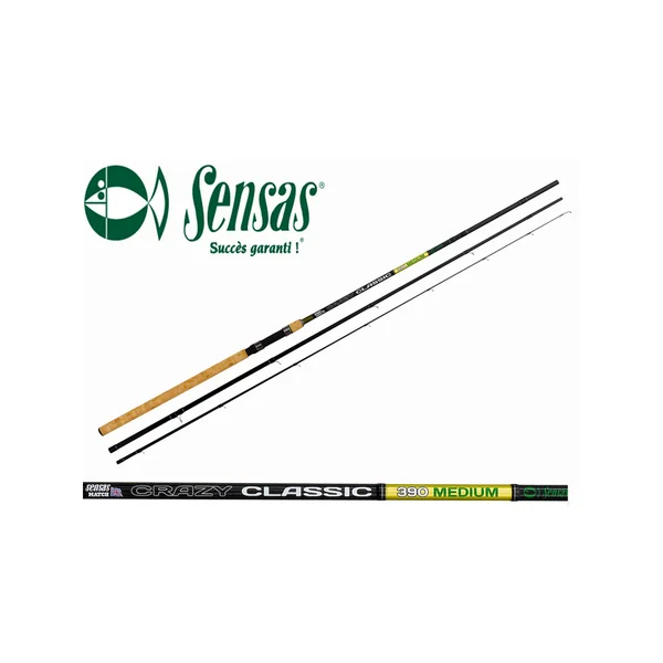 Il s’agit d’une canne anglaise, de marque Sensas, d’entrée de gamme qui a été spécifiquement conçue pour les pêches de belles carpes en carpodrome.