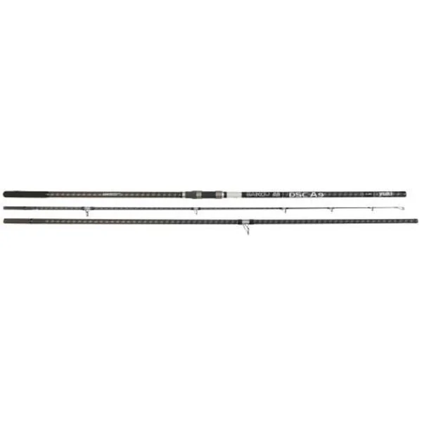 Longueur proposés : 4,50M ou 4,20M. Caractéristiques de la version 4,50M : Poids : 582G. Nombre d'éléments : 3. Encombrement : 156CM. Caractéristique de la 4,20M : Poids : 559G. Nombre d'éléments : 3. Encombrement : 146CM.Carbone Haut Module. Scion Hybride. Scion avec ruban réfléchissant. Anneaux Fuji MN. Porte-moulinet Fuji DPS. Puissance : 100-250G.