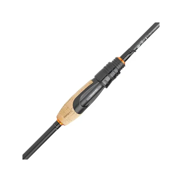 Le design volontairement minimaliste de la poignée assure une excellente prise en main et un contrôle précis lors des phases de lancer et d’animation. Le porte-moulinet ergonomique avec bague à vis garantit un maintien fiable du moulinet.