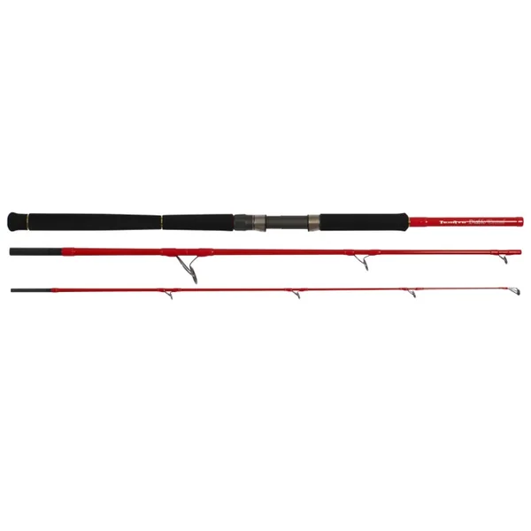 | Diablo Travel 70 LB | Longueur : 2,50 m Poids : 300 g Encombrement : 0,89 m Puissance Lancer : 40/120 g Puissance Ligne : 70 lb max Nombre d’élément : 3 égaux Destination : Voyage / Polyvalente |