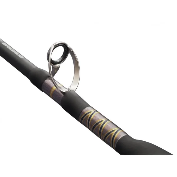 Dotée d’un blank en carbone extrêmement robuste, cette canne est équipée d’anneaux SeaGuide très résistants, capables de supporter les combats avec les plus gros poissons. La particularité de cette canne réside dans ses anneaux montés en spirale sur le blank, une caractéristique unique qui empêche la ligne de toucher le blank en cas de flexion. Cela permet une meilleure répartition de la pression exercée par la ligne, optimisant ainsi le travail du blank et la gestion du combat.