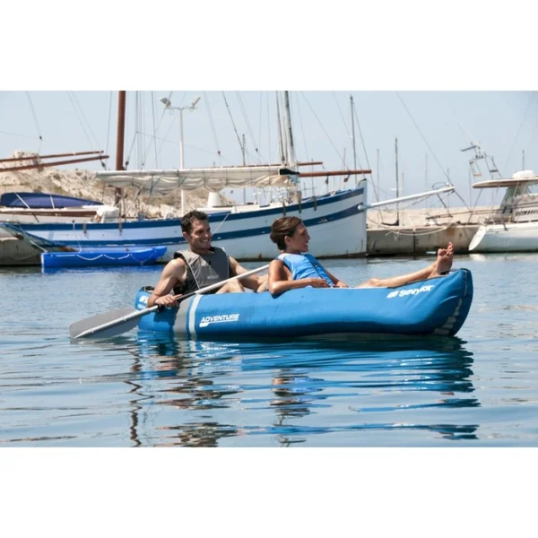 Le kayak gonflable Adventure de SEVYLOR, un équivalent du Sevylor Canyon, est facile à transporter, confortable et résistant. C’est la valeur sûre pour une petite balade en famille. Conçu dans la forme et le style des traditionnels canoës américains, il est doté de sièges ajustables pour garantir un meilleur confort et une maniabilité remarquable grâce à sa dérive directionnelle amovible.