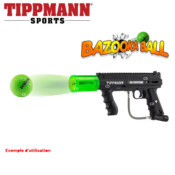CANON BAZOOKA BALL POUR TIPPMANN 98 :Caractéristiques :-Canon adaptable sur Tippman 98, Bazooka Ball.-Permet de tirer des grosses balles PVC.-Conseillé pour une découverte ludique du Paintball. (pour les enfants notamment)-Coloris : Vert.*Taille unique.
