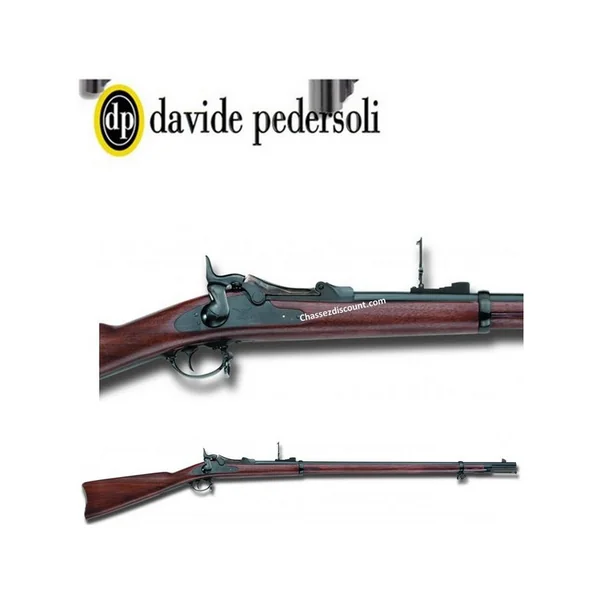 CARABINE DAVIDE PEDERSOLI SPRINGFIELD TRAPDOOR RIFLE CAL 45/70 :Caractéristiques :-Réplique de carabine de tir à poudre noir.-Carabine à canon rayé à chargement par la culasse par portière articulée.-Chien externe, hausse rabattable, 2 bandes acier.*Caractéristiques Techniques:-Calibre 45/70 Gov.-Longueur du canon : 82.8cm,-Canon à 3 rayures au pas de 1:22″ soit 560mm.-Crosse anglaise,-Finition canon : bronze,-Longueur totale : 1318 mm,-Poids :4Kg000.*ARME SOUMISE A LA LEGISLATION : Carte d’identité OBLIGATOIRES.*AUCUNE LIVRAISON NE POURRA INTERVENIR SANS PIECES JUSTIFICATIVES.
